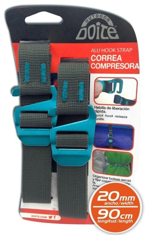 Resistentes correas con hebilla de aluminio, son fáciles de utilizar, resistentes, livianas y extremadamente versátiles, puedes amarrar bolsas secas, comprimir tu equipo o asegurar la carga tu mochila.