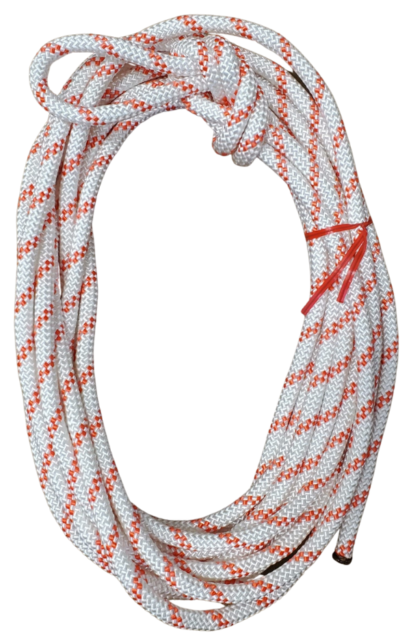 Para realizar izajes en posición vertical con camillas skedco, 9mts (30 pies) de cuerda de rescate kernmantle de 3/8″ (9,5mm). La cubierta y el núcleo de nylon con una resistencia mínima a la rotura de 2700kg (6,000 lbs.), se proporciona con un nudo en forma de 8 en el medio.