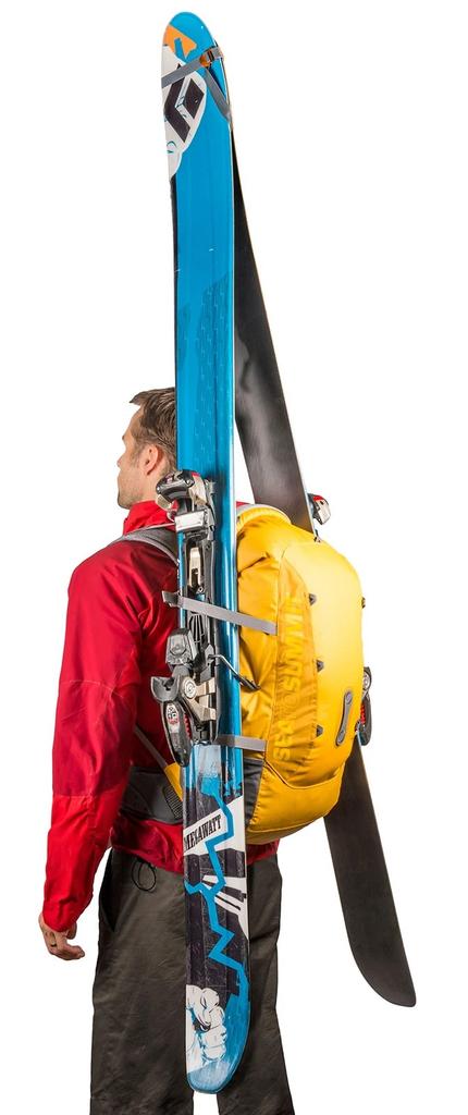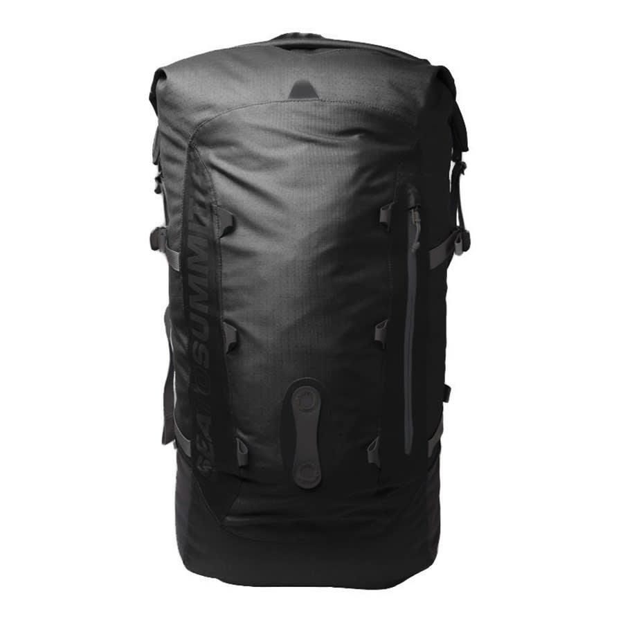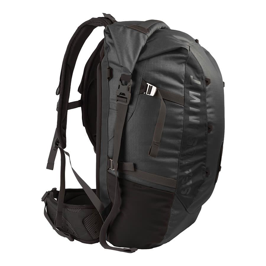 La mochila estanca Flow 35L incorpora un cinturón lumbar desmontable, múltiples correas y cintas de compresión en ambos lados. Presenta numerosas alternativas para transportar un equipo diverso en sus bolsillos con y sin cremallera.