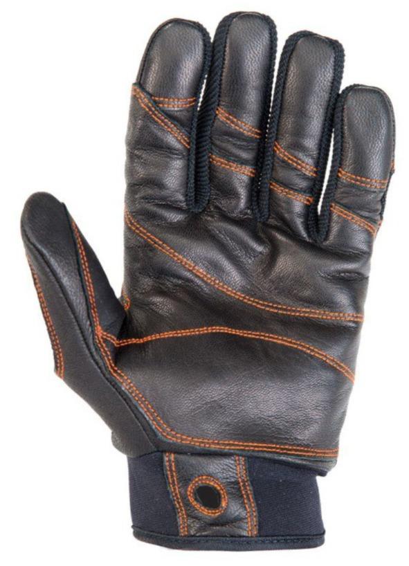 • Reforzamientos: Doble capa de piel natural en la palma y en el espacio entre pulgar e índice, y dorso reforzado con inserciones elásticas anti-abrasión.