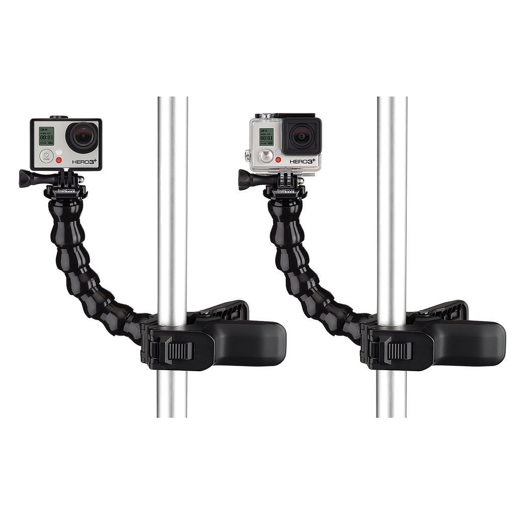 Sujeta tu GoPro a objetos con un diámetro de entre 0,6 cm y 5 cm. Fija tu cámara directamente a la abrazadera para obtener un montaje de bajo perfil, o utiliza el cuello opcional para conseguir una mayor variedad en el ajuste del ángulo de la cámara. Jaws sujeta de forma segura objetos irregulares y ultradelgados gracias a su diseño innovador.