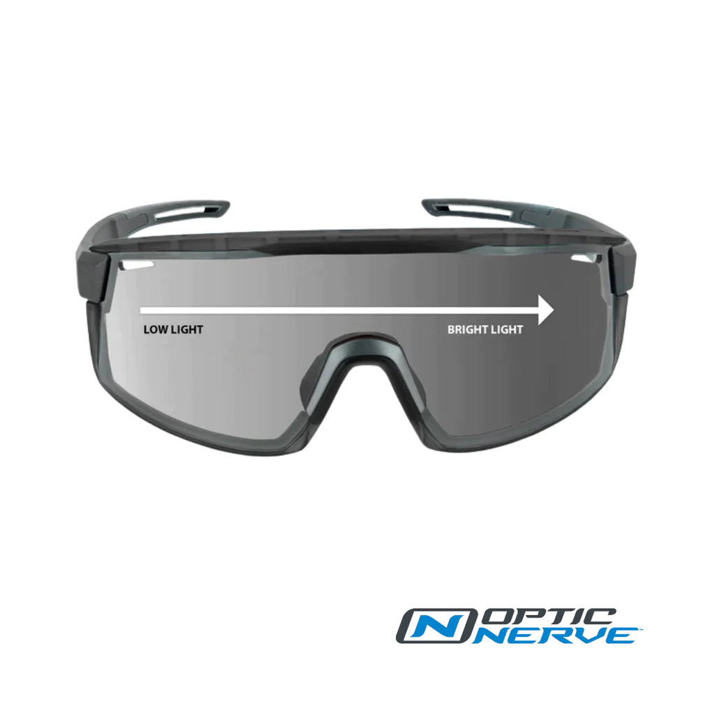 Realiza cualquier actividad y condición con el FixieMAX Fotocromático de OPTIC NERVE con tecnología de lente sensible a los rayos UV que cambia rápidamente de claro a medio, pasando sin problemas de sol brillante a sombra oscura o nubes.