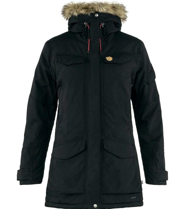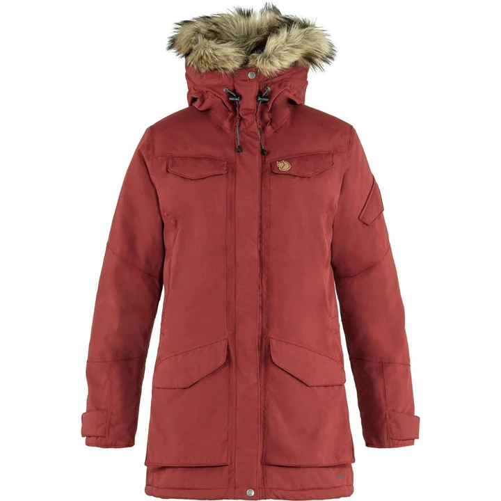 Parka de mujer larga y grande que mantiene calientes la parte trasera y los muslos. La prenda de invierno perfecta para las condiciones climáticas cambiantes, protege contra el viento y la lluvia al mismo tiempo que el acolchado Supreme Micro Loft te mantiene abrigado en temperaturas realmente bajas. Capucha fija con forro polar suave y piel artificial desmontable que mantiene las tormentas de nieve alejadas de tu cara. Muchos bolsillos prácticos, incluidos amplios bolsillos de fuelle y bolsillos para calentar las manos en el dobladillo, dos bolsillos con cremallera en el pecho y un bolsillo para un reproductor multimedia en la manga. En el interior, hay dos bolsillos de malla, un bolsillo para el teléfono con abertura para auriculares y un bolsillo de seguridad. Cordón en cintura y bajo y cremallera larga bidireccional con solapa protectora. Ajustes de velcro para los puños de las mangas.