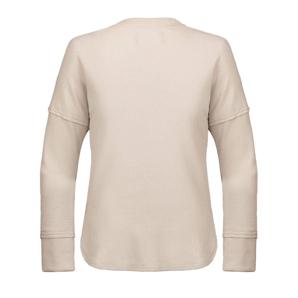 Tela: Waffle de calce ajustado con cuello redondo y puños elasticados