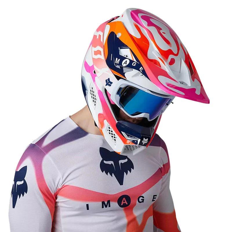 Polera Moto Flexair Ryvr Edicion Limitada Blanco/Azul/Rosado Fox