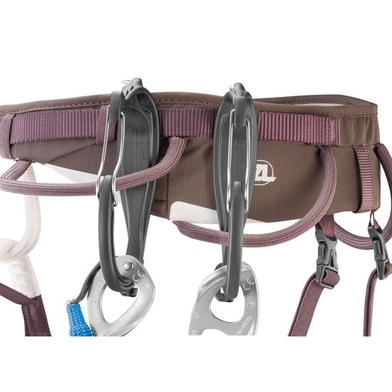 - Se coloca en la trabilla de la cintura en los arneses Petzl (algunos