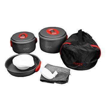 Con el Set de Ollas Gastronome II es posible cocinar para 3 a 4 personas. Muy facil de transportar. Con 2 ollas, sarten, 2 tazas, 1 Cucharon y 4 pocillos.. es todo lo ncesario para su viaje de campamento. Diseño de color opaco muy resistente al uso y a la corrosion.