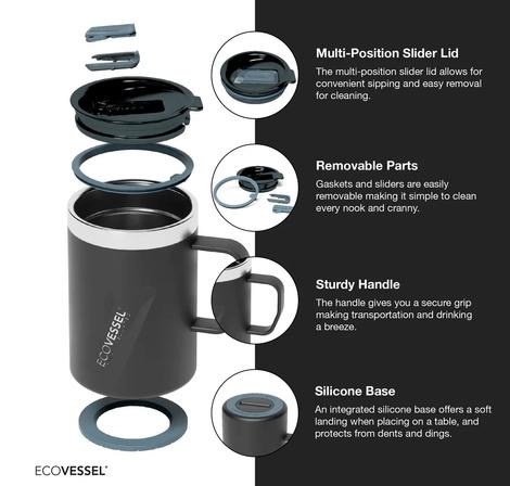 • Tapa deslizante de múltiples posiciones: apertura y cierre ajustables para beber fácilmente y evitar derrames.
