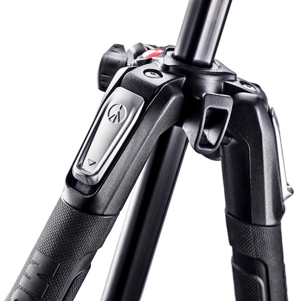Plegadas, las patas del trípode de aluminio 190X de 3 secciones se pueden soltar con un solo movimiento para que pueda prepararse para disparar sin demoras. El agarre con una sola mano de las palancas QPL garantiza un agarre cómodo, y los intuitivos selectores de ángulo de las patas le permiten personalizar cada pata en un ángulo preestablecido.