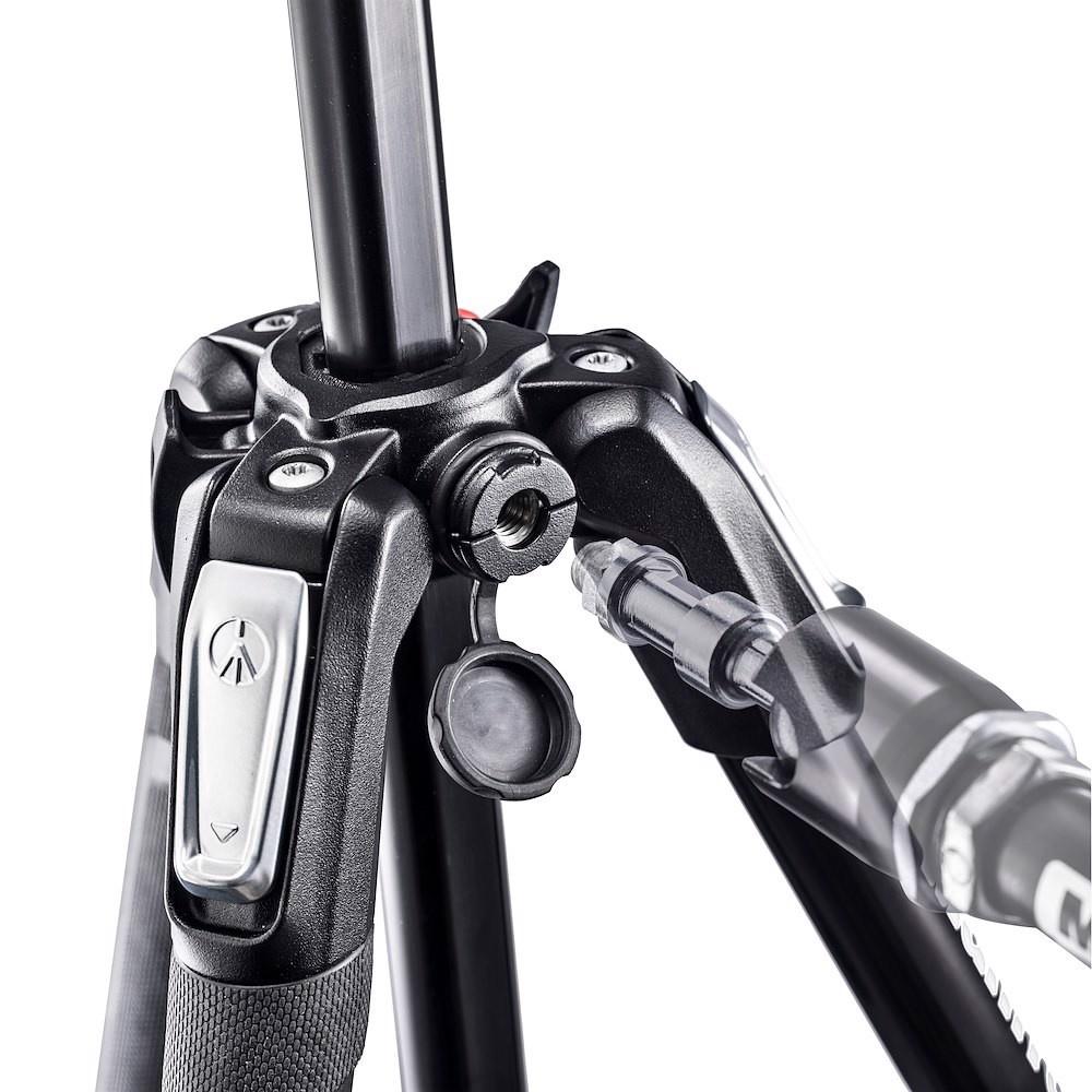Use el conector Easy Link en la parte superior del 190X para conectar un accesorio de video o fotografía, como un flash o una luz LED. Este equipo se puede acoplar a un brazo extensible o soporte, convirtiendo tu trípode en un práctico y versátil estudio móvil.