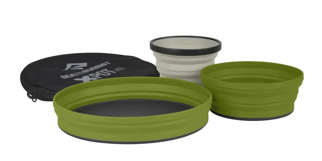 Nuestro completo X-Set de 3 piezas incluye un X-Bowl, un X-Plate y una X-Mug. Este juego de vajilla duradero, compacto y que ahorra espacio viene en una bolsa de almacenamiento Ultra-Sil liviana con cremallera.                                                        Hechos de silicona flexible de grado alimenticio que se colapsa fácilmente, encajan perfectamente para brindar una opción de vajilla compacta, duradera y que ahorra espacio para cualquier actividad. Un conjunto verdaderamente multifuncional, la base de nailon del X-Plate le permite funcionar como una tabla de cortar cuando se le da la vuelta, mientras que el X-Mug tiene una capacidad de 480 ml que también está calibrada como taza medidora.